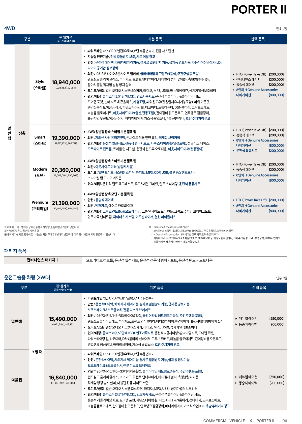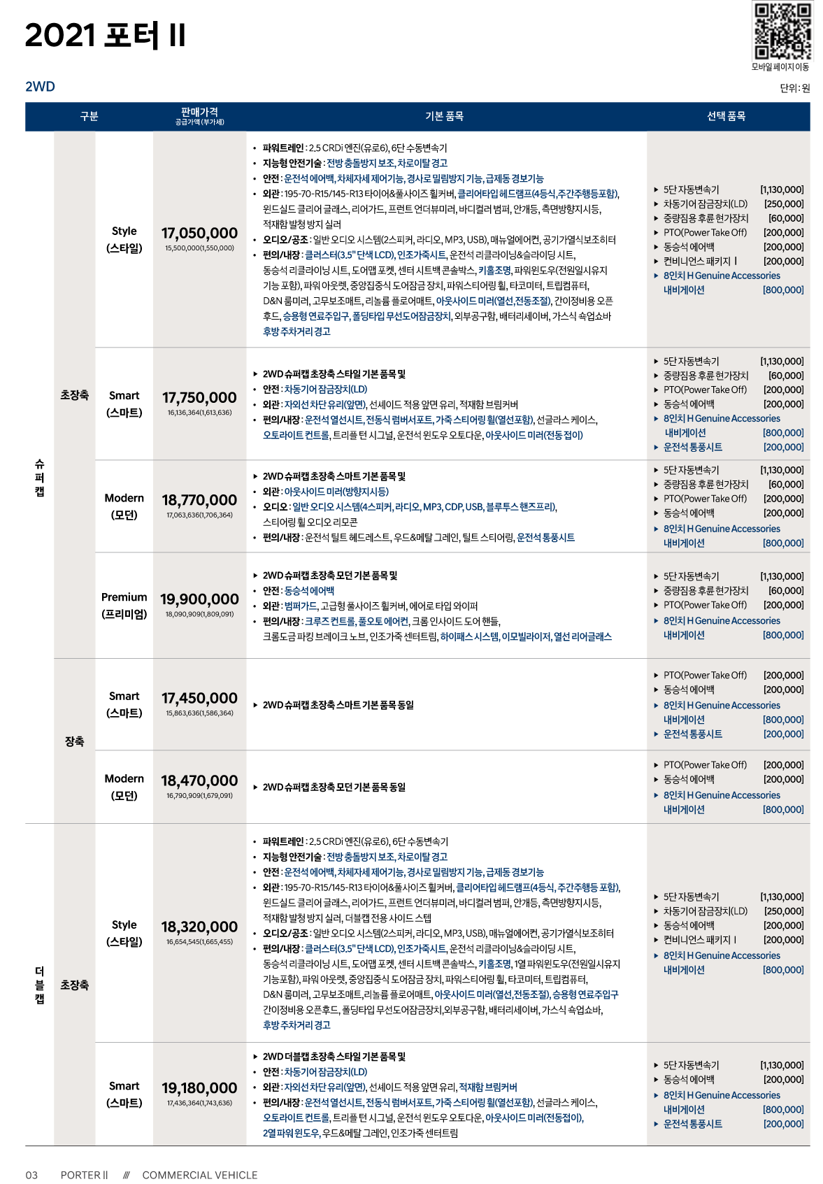 현대 1톤신차 가격표 (2021 포터2 가격표)