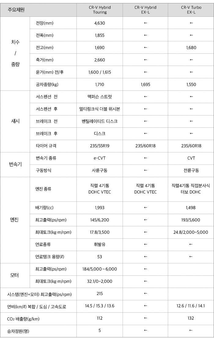 혼다 cr-v 제원 / 혼다 cr-v 연비