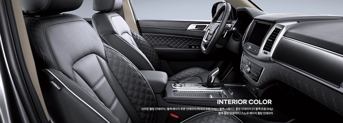 ▲올 뉴 렉스턴 브라운 퀼팅 인테리어/블랙 헤드라이닝