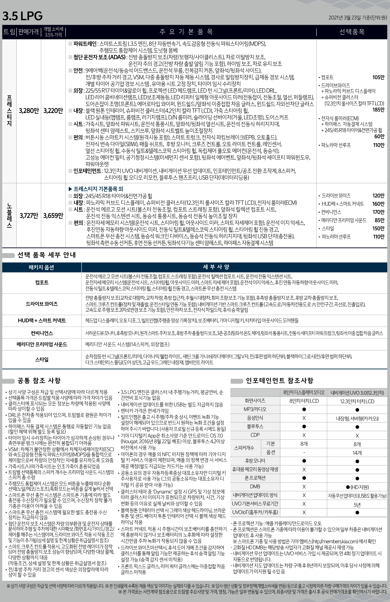 k8 lpi 가격은 프레스티지 트림이 32,200,000원이며, 노블레스 트림이 36,590,000원 입니다.