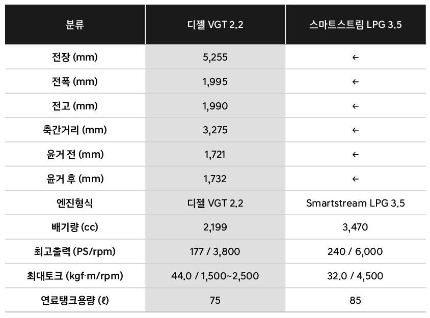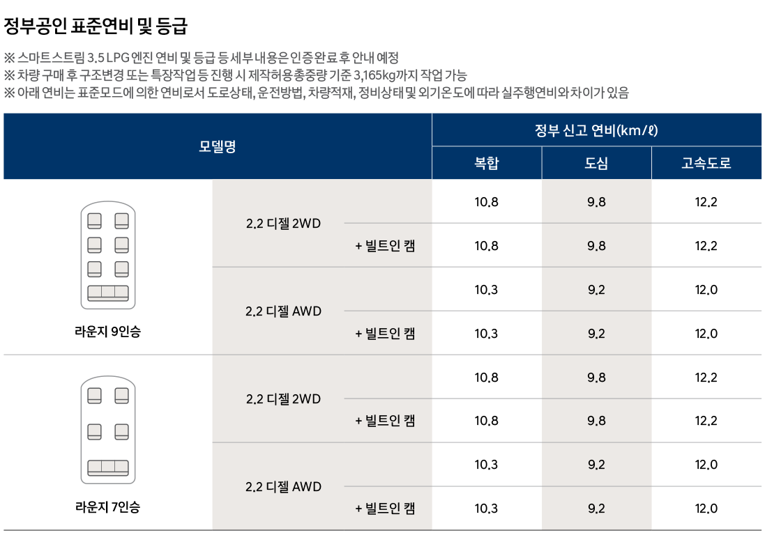 스타리아 라운지 제원 / 스타리아 라운지 연비