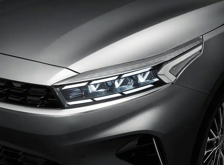 k3 페이스 리프트 모델의 전면은 라디에이터 그릴과 LED 램프를 연결해 와이드한 느낌을 줬으며, 전투기 날개를 떠올리게 하는 범퍼 하단부와 스피드를 형상화 한 DRL 등을 통해 날렵하고 세련된 이미지를 구현했습니다.