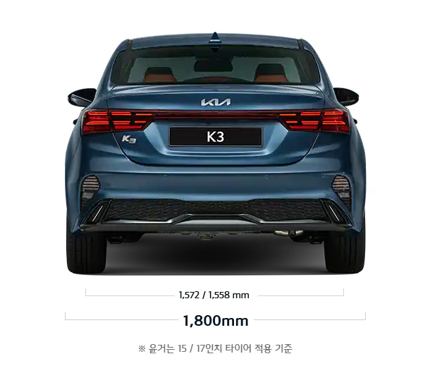 더뉴 k3 후면은 입체감을 살린 가로형 디자인으로 안정적이면서 스포티한 느낌을 줬으며 신규 알로이휠을 적용해 역동적인 인상을 강조했습니다.
