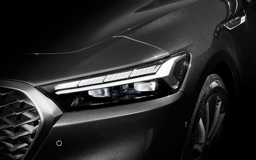 더뉴k9 전면은 크기를 키운 대형 라디에이터 그릴에 V형상의 정교한 크롬 패턴을 적용해 플래그십 세단의 고급스러움을 강조했습니다.