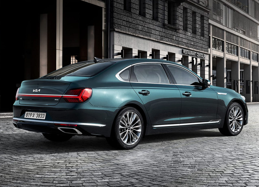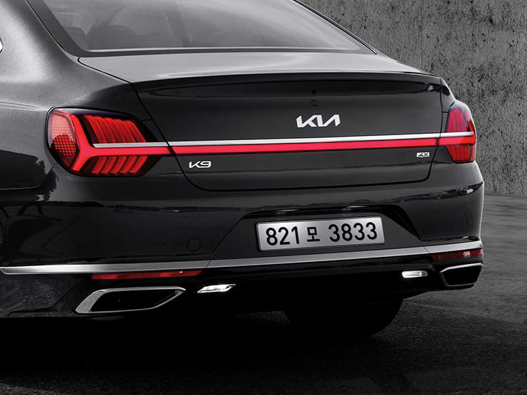 후면에는 좌우 수평으로 연결해 이어지는 리어램프 디자인을 적용해 와이드하고 안정적인 느낌을 줬으며, 기아의 새로운 로고와 이에 맞게 개편한 새로운 서체의 K9 이름도 부착됐습니다.