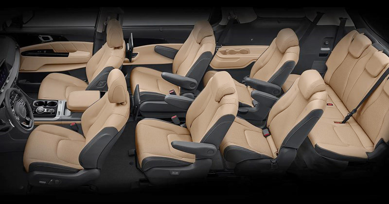 카니발 내장 색상은 코튼 베이지와 미스티 그레이, 새들 브라운 등 3가지 내장 컬러가 준비되어 있습니다.