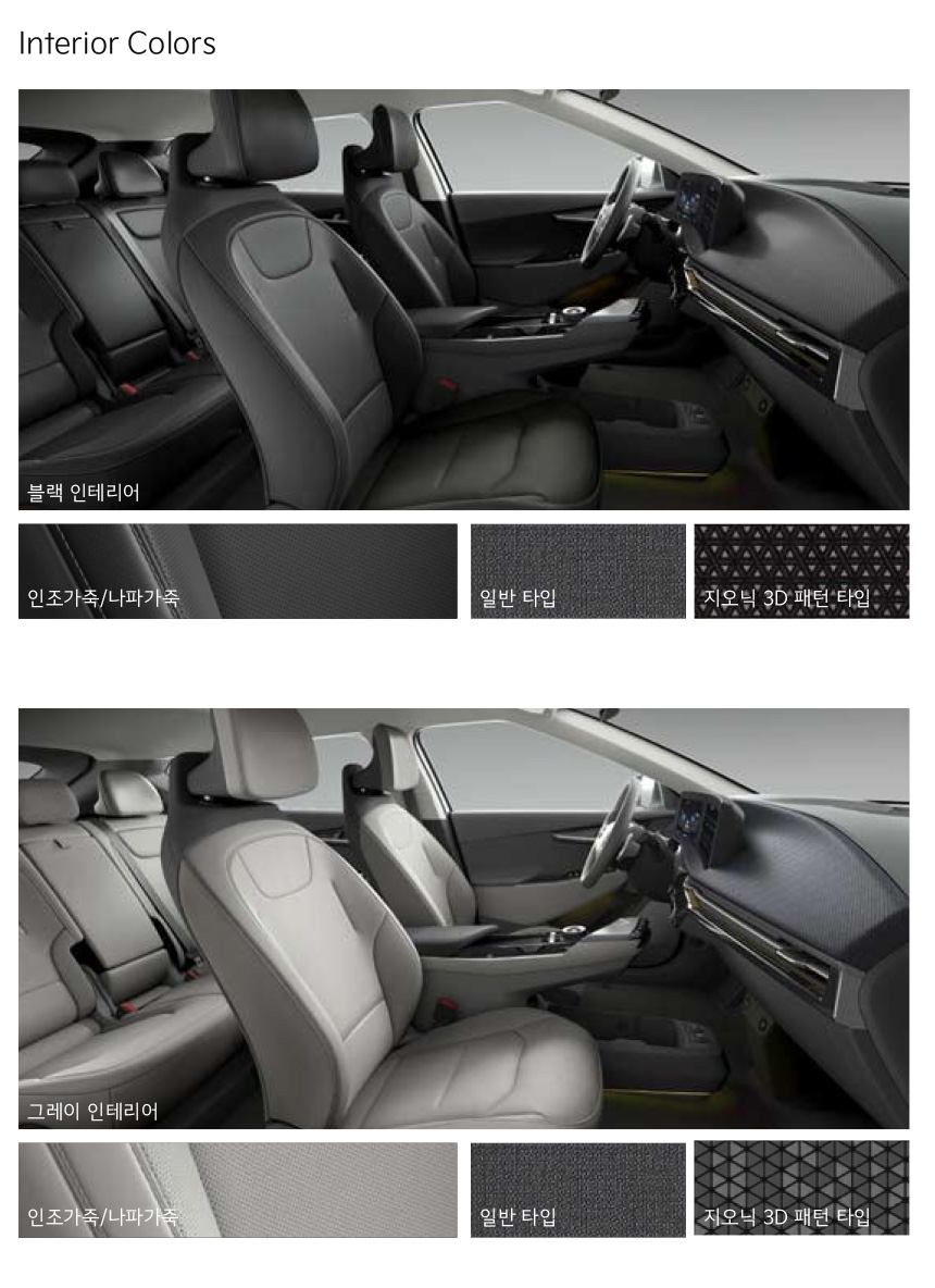 ev6 실내 색상은 블랙 인테리어, 그레이 인테리어, 브라운 인테리어, 블랙&화이트 인테리어가 있으며 이 중 블랙&화이트 인테리어는 GT-Line 전용 컬러입니다.
