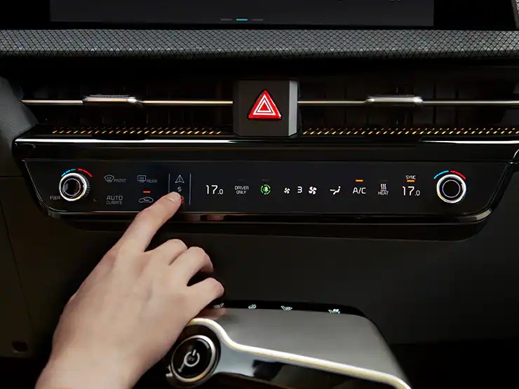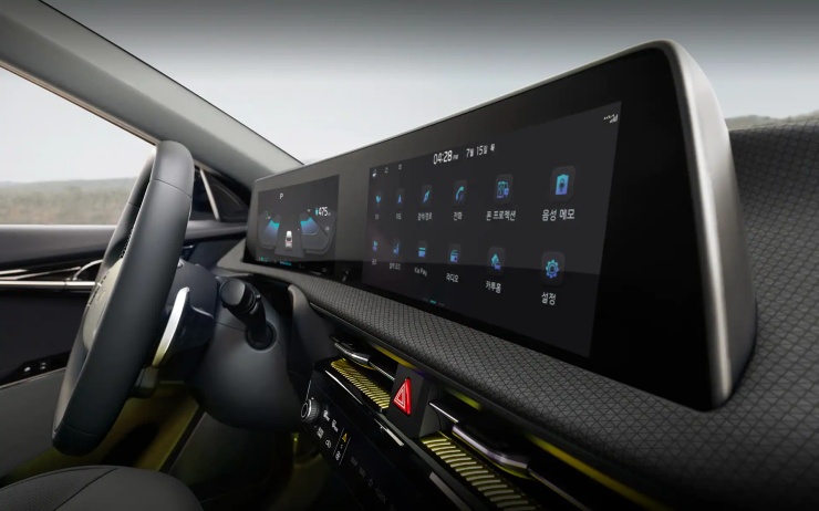 센터 콘솔에는 버튼시동과 다이얼 방식 변속기, 휴대폰 무선 충전기 등을 배치했으며, 수평으로 길게 자리잡은 파노라믹 커브드 디스플레이를 통해 계기판과 인포테인먼트 등 다양한 정보를 한눈에 확인할 수 있습니다.