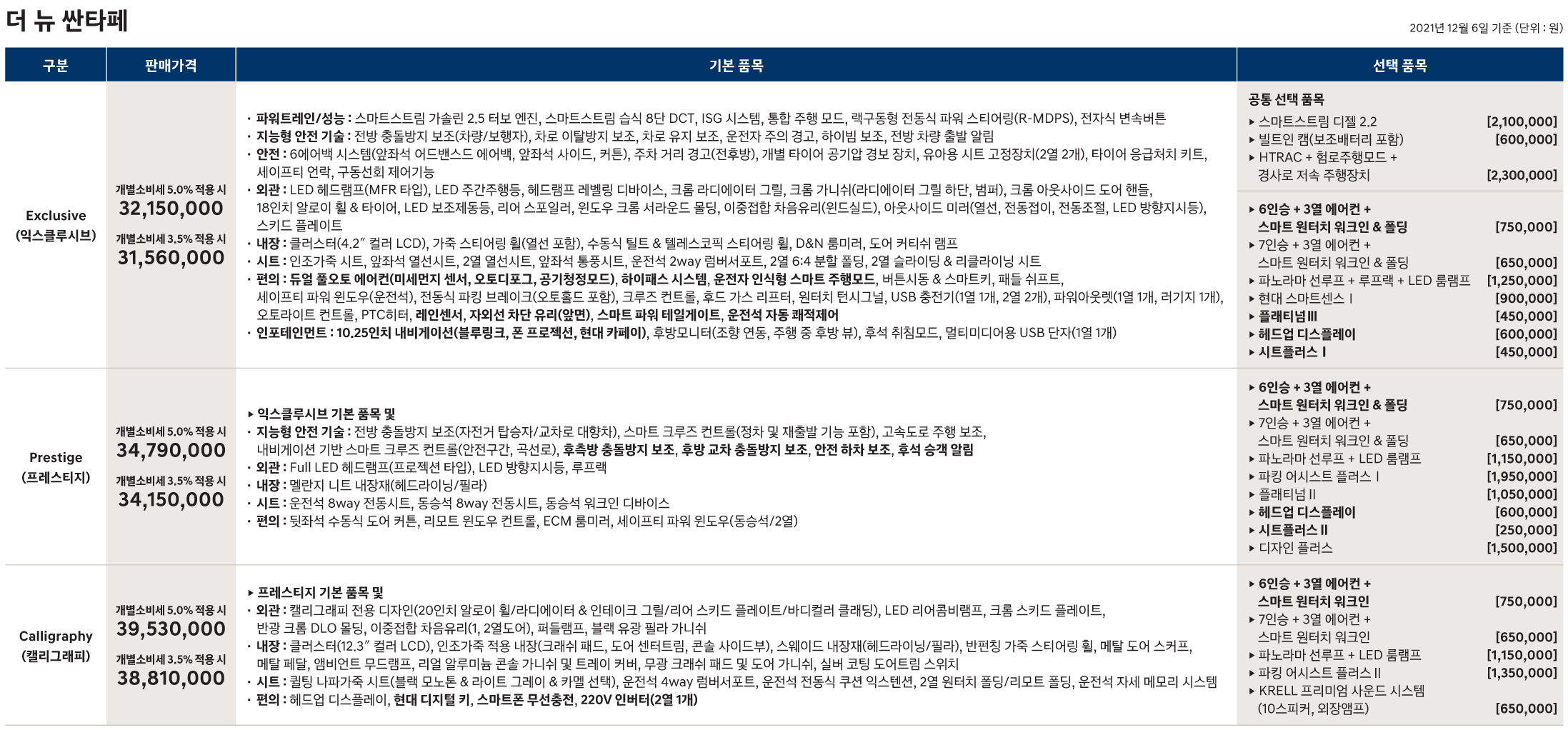 | 2022 싼타페 하이브리드 가격 연비 제원 색상 (0) | 2021.12.08 |
