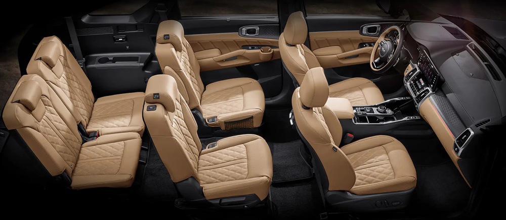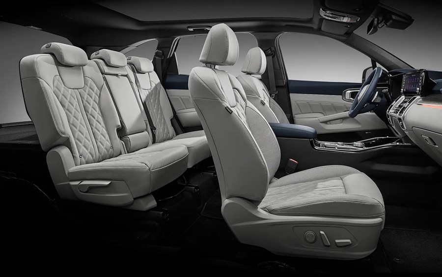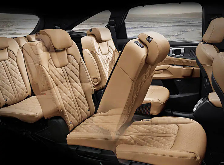 쏘렌토 하이브리드 실내 색상은 새들 브라운 인테리어와 네이비 그레이 인테리어 2가지가 있으며, 네이비 그레이 인테리어는 하이브리드 모델에만 적용할 수 있습니다.