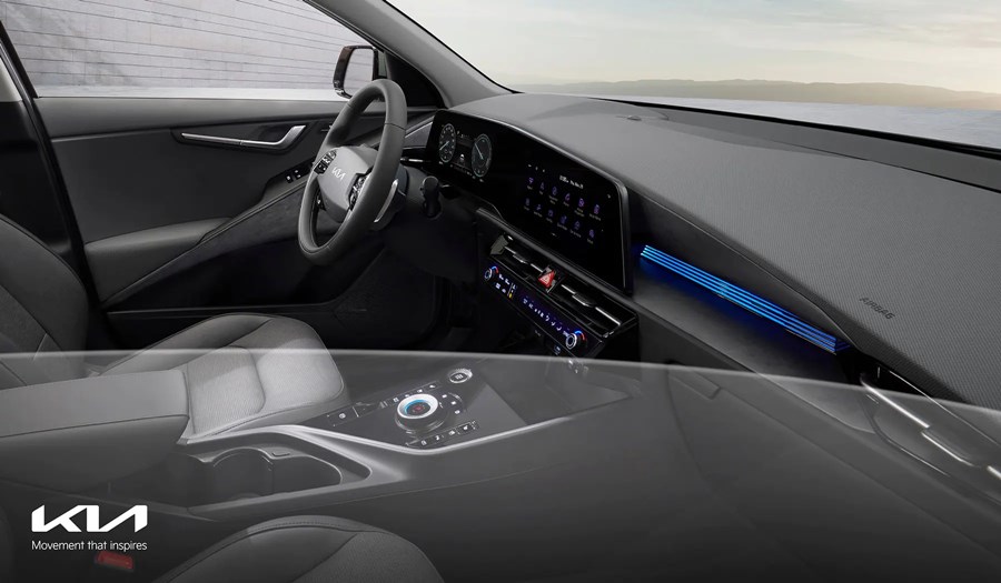 신형 니로 하이브리드 실내 공간은 슬림한 대시보드와 도어를 연결하는 대각선에 10.25인치 파노라마 디스플레이를 배치했으며, 전자식 변속 다이얼과 하이글로시 블랙 센터 콘솔, 고급스러운 엠비언트 라이트 등이 조화를 이루며 하이테크 한 분위기를 제공합니다.