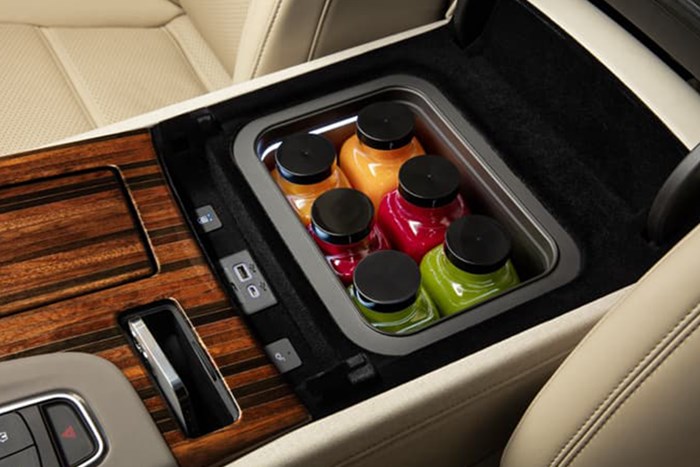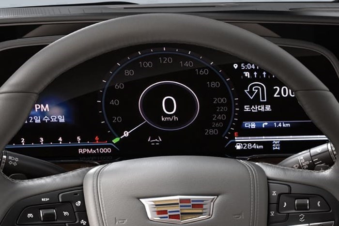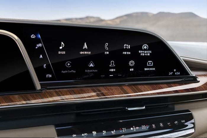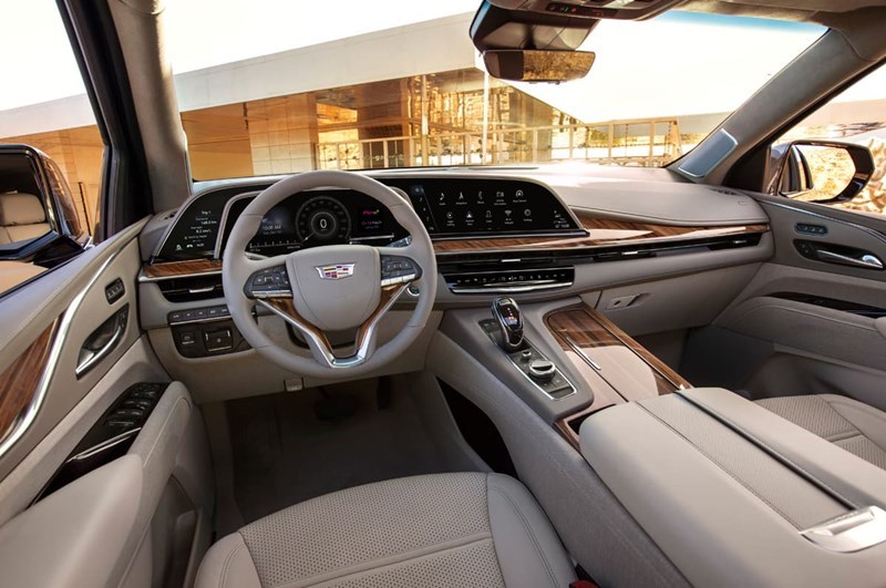 에스컬레이드 esv 실내 공간에는 38인치 LG 커브드-OLED 디스플레이와 36개의 스피커가 내장된 AKG 스튜디오 레퍼런스 사운드 시스템을 탑재했으며, 마사지 기능이 포함된 앞좌석 16방향 파워시트와 냉장 및 냉동 기능이 포함된 콘솔 쿨러도 적용되었습니다.