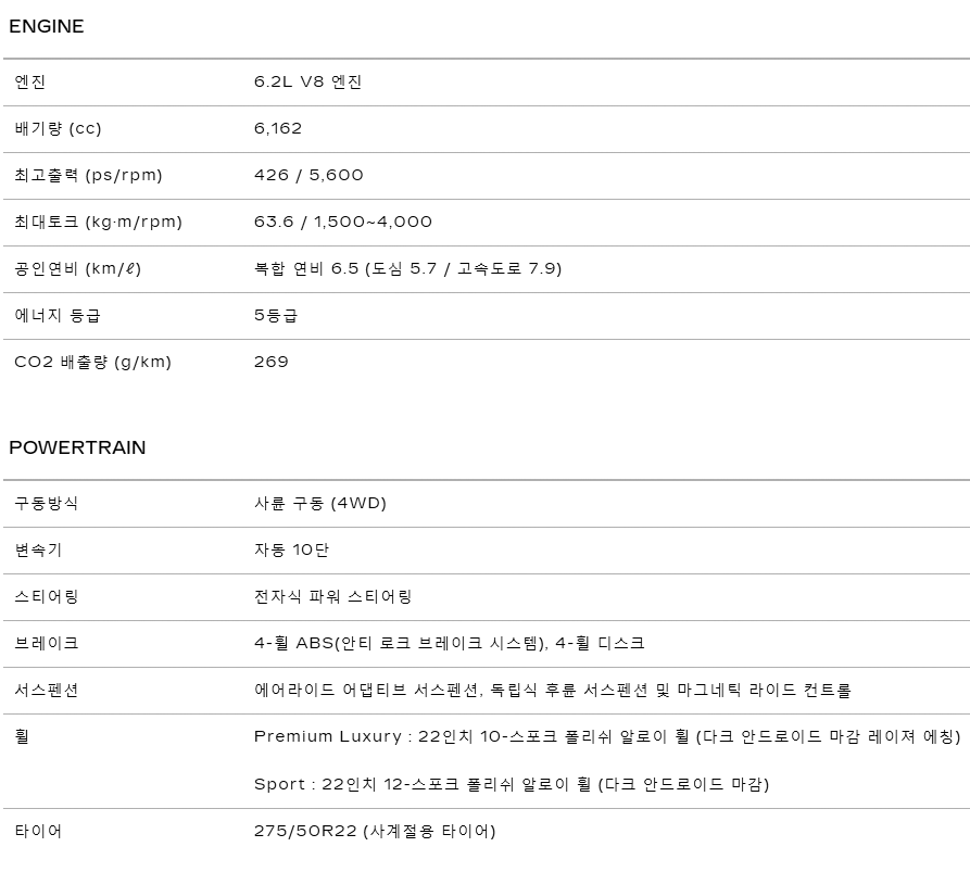 캐딜락 에스컬레이드 esv 제원 및 연비