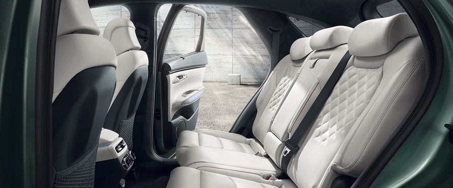 GV70 전기차는 후륜 전동화 시스템 높이와 바닥 두께를 최소화하고 센터 터널을 낮춰 내연기관 모델 수준의 2열 공간과 거주성을 확보했습니다.