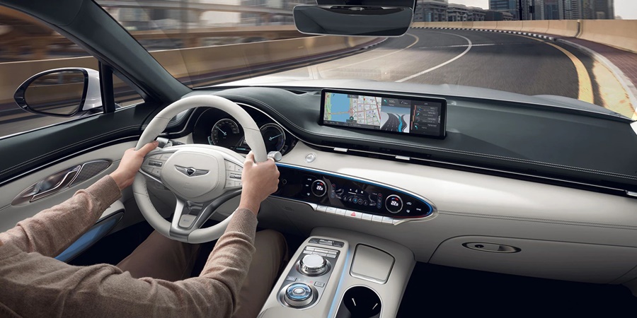 gv70 전기차 실내 공간에는 전동화 모델 전용 GUI를 탑재한 12.3인치 클러스터가 미래지향적이고 하이테크한 느낌의 실내 분위기를 선사합니다.