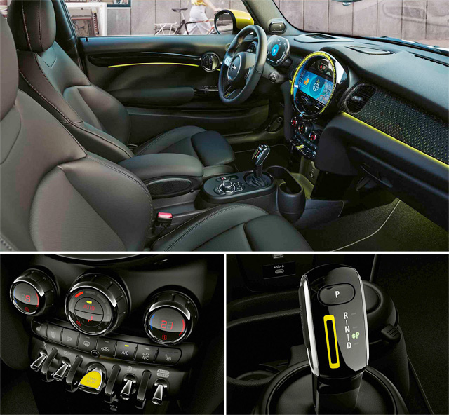 사이드 미러 캡과 엠블럼에는 순수 전기차를 상징하는 옐로우 컬러를 포인트로 적용했으며, 유니언잭을 연상시키는 디자인을 넣은 리어 라이트는 미니만의 개성을 한층 더해줍니다.