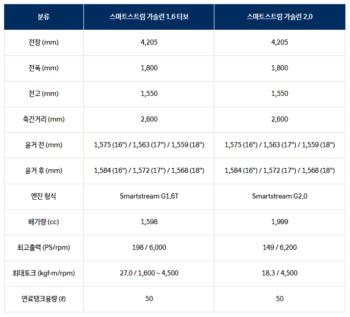 2022 코나 가솔린 1.6 터보 가격은 가솔린 2.0 트림별 가격에 70만 원이 더 추가되며, 4륜구동 모델 선택 시에는 185만 원이 추가됩니다.