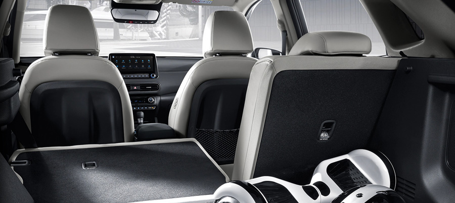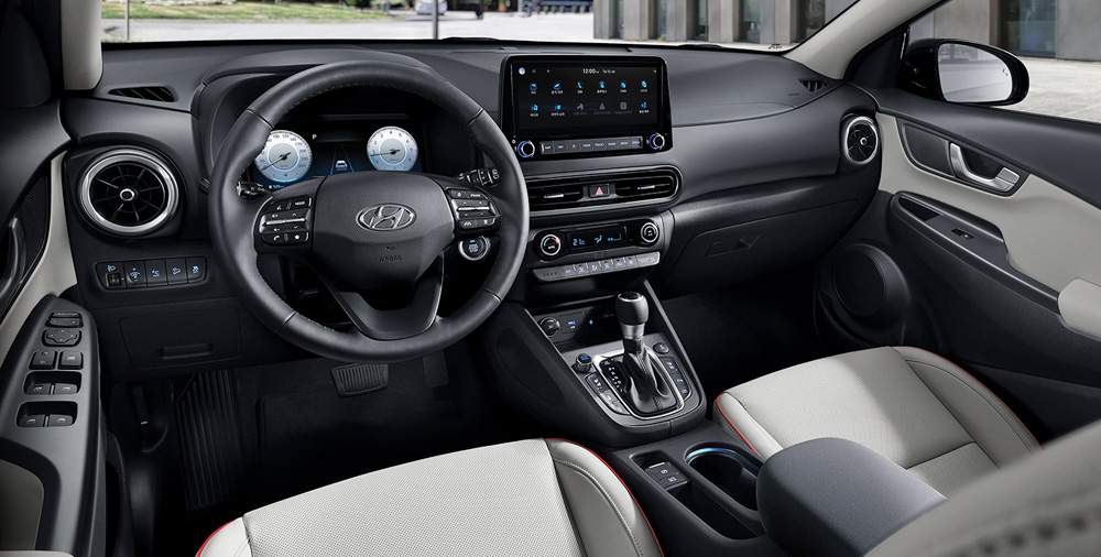 2022 코나 최상위 인스퍼레이션 트림 외관에는 Full LED 헤드램프(MFR 타입), LED 리어콤비램프, 18인치 알로이 휠 & 타이어, 루프랙이 적용되며, 10.25인치 컬러 LCD 클러스터, 천연가죽 시트, 동승석 8way 전동시트, 뒷좌석 열선시트, 뒷좌석 암레스트, 동승석 워크인 디바이스와 함께 지능형 안전기술인 하이빔 보조가 기본으로 탑재되었습니다.