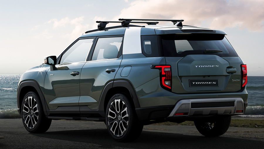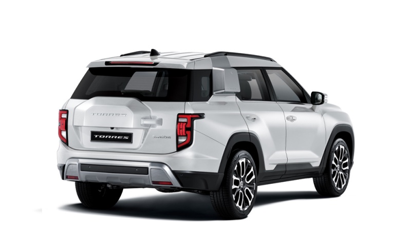 토레스 측면부는 직선 라인과 각진 휠아치 가니쉬가 어우러져 역동적이면서 강인한 스타일을 완성했습니다.