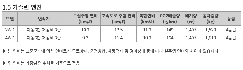 토레스 연비는 2륜구동 모델이 복합연비 11.2km/l이고 4륜구동 모델이 복합연비 10.2km/l입니다.